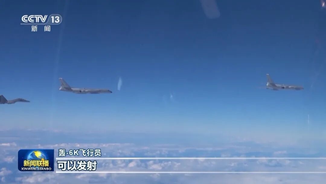 “我已到达任务空域,导弹准备完毕,可以发射!”挂载实弹的轰-6K战机编队远程奔袭,在歼-16等战机掩护下,迅速建立打击阵位,模拟发射多枚精确制导弹药,对台岛内部多个重要目标实施打击。